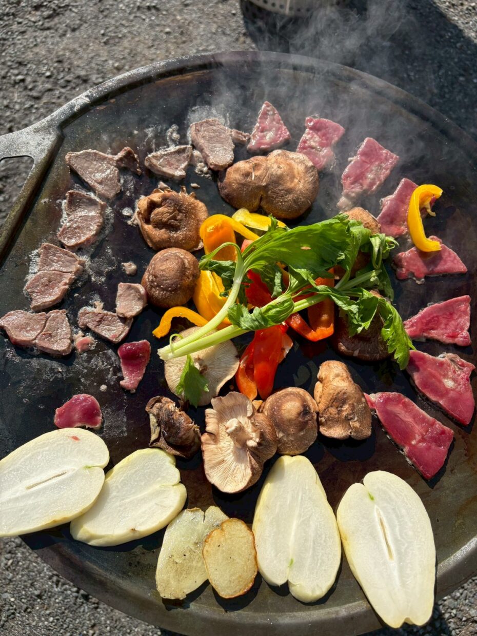 横瀬町の原木椎茸や、ハヤトウリと一緒にジビエBBQ。スウェーデングリドルでじっくりと