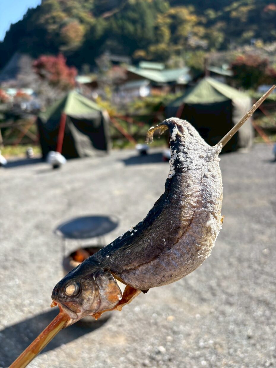ただ加熱するのとは違い、薪の香りで食べる野菜や鹿肉の味は格別です。横瀬町の猟友会メンバーが採ってきてくれた、横瀬川の鱒や、横瀬ジビエを豪快に薪で焼いて食べます。