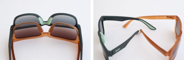 GRAND G:BFGよりもややカーブがかかったレンズ面で、少し内に入ったテンプルがこめかみ辺りとテンプル先端で優しく固定される印象。テンプル自体は細身