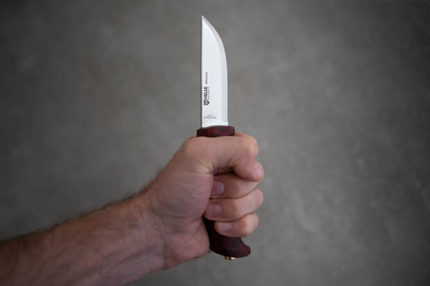 刃長約90mmのミドルサイズで、木材の切削やカービング、調理などに幅広く活用できる一本。ブレードにはスウェーデン Alleima社製 12C27 ステンレススチールを採用。衝撃性・耐摩耗性に優れた素材で扱いやすく、研ぎ直しも容易に行えます。ブレードはクラシックなスカンジグラインドが施されており、安定の切れ味を実現しています。