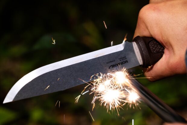 ナイフの重みで、過剰に力を入れることなくファイヤースターターに重みが伝わり、より力強い火花が生まれます。