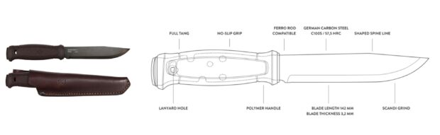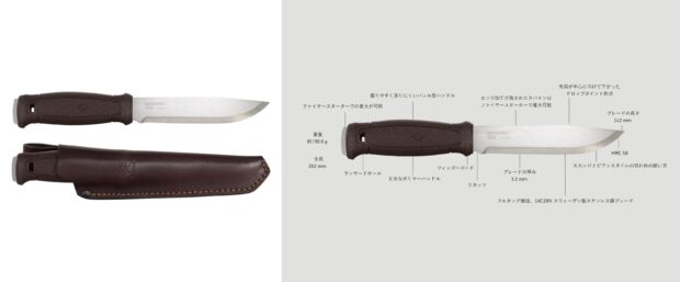 今回登場した「ガーバーグ グランド」は、従来のガーバーグよりも約33mmほど長いロングブレードが大きな特徴。もともとのデザインやフルタング構造を踏襲しながら、より多くの鋼材、より強靭な構造、より高い性能を備え、『グランド』な進化を遂げました。モーラナイフ史上最もパワフルなナイフの誕生です。