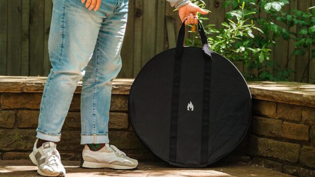 焚き火の熱を円盤型のディスクに反射させて、周囲を暖める画期的なプロダクト「ヒート ディフレクター」の収納ケース。ディスクに付着した煤問題もこれで解決です。付属の脚や固定パーツ用のポケットも付いて、失くす心配もありません。