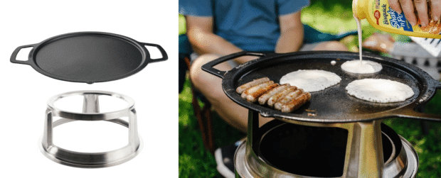 フラットな表面の鉄板とゴトクのセット。アウトドアで楽しみたい豪快な炒め料理や、大人数の食事を一度にたくさん作りたい時におすすめの鋳鉄アイテムです。