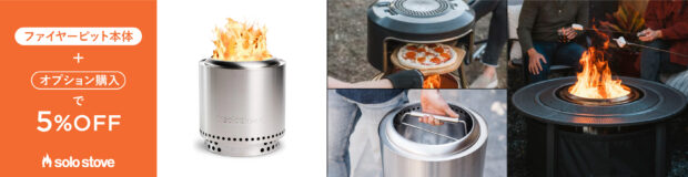 「ソロストーブ」は独自の二重構造で2次燃焼を引き起こすことで、極めて高い燃焼効率を誇るネイチャーストーブ。大人数を温めることができる大型の「ファイヤーピット」と、軽量コンパクトな「キャンプストーブ」を展開しており、調理などアクティビティの幅を広げる専用のアクセサリーも充実しています。