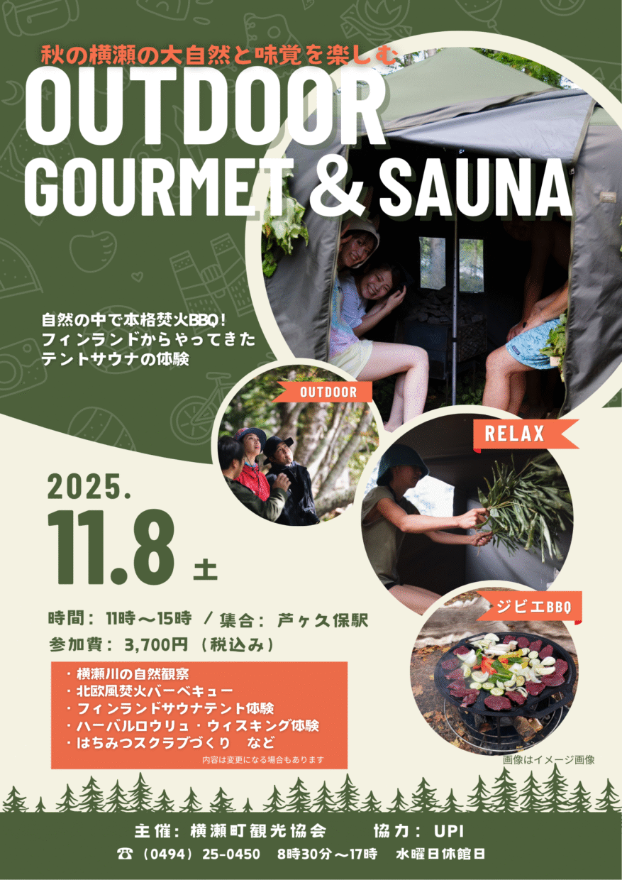 今回秋の横瀬町を楽しむアウトドアツアーを、「食とサウナ」をテーマに開催いたします。