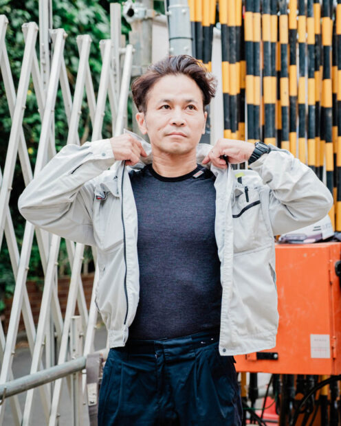 話には聞いてたけど本当にあたたかいですね。汗をかいても不快感がないし、身体に沿って身体をあたたかくしてくれているのを実感しています。あと外仕事から戻って室内に入った時にも寒暖差があるにもかかわらず、不思議と暑いとかがなく、温度調整をしてくれててずっと着てられます。特にフルジップジャケットの方はおしゃれ着感覚で他のデザインも着てみたいなと、仕事以外での出番も考えています。身体のフィット感では、ライトもフルジップジャケットもどちらも新品の状態だと少しタイトかなと思ったんですが、着ているうちにどんどん身体に馴染んできた感じがあって着心地が良いです。これから冬本番に入る外仕事では大活躍ですね。たとえば、高齢者の方や漁師さん、雪山で従事する人たち、外で働くガードマンたちにもオススメしたいですね。