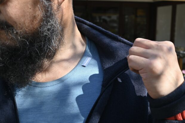 レイヤリング難民だった自分は、ベースレイヤーのライトの上にミドルとアウターを兼ねてくれそうなフルジップジャケット600を選びました。高木に登り北風の中ハーネスとロープで吊られながらの剪定作業も、庭の中を歩き回る造園土木やお手入れ作業時も、あたたかいのに暑くなり過ぎず、フルジップジャケット400に比べて風を通さないので関東平野部ではアウター要らずで脱ぎ着する必要がなく、胸元のジップワンアクションで体温調整ができて快適です。多少の雨や雪の中の作業で濡れても、ウールがゆっくりと乾いてくれるので寒さを感じ難いですし、吸湿し素肌に水分を感じさせないため、濡れている感覚もないです。